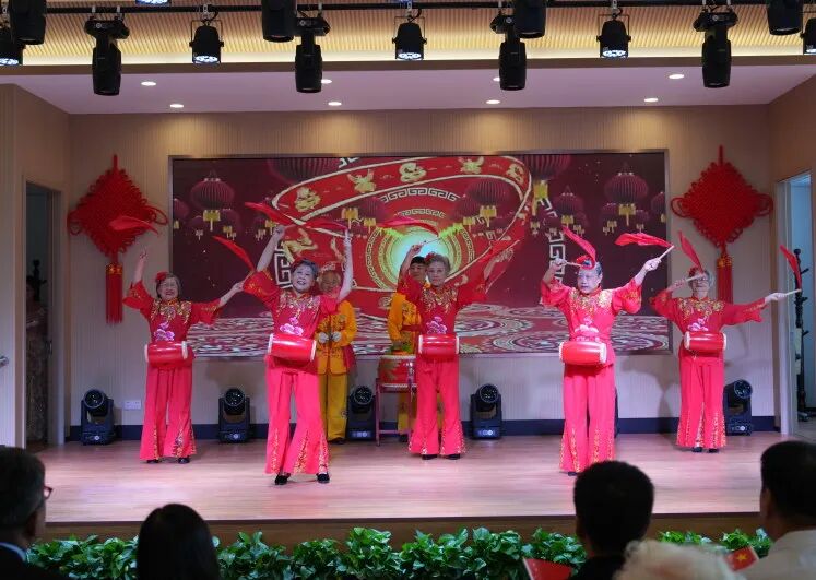 庆典活动在活力四射的舞龙和腰鼓舞表演中盛大启幕。燕达在住长辈们身着喜庆的演出服装,以热情灵动的舞姿,传递着节日的喜悦与生命的蓬勃活力。他们精彩的表演瞬间点燃了全场观众的热情,也充分展现出银龄长者“老有所学、老有所乐”的蓬勃向上精神风貌。