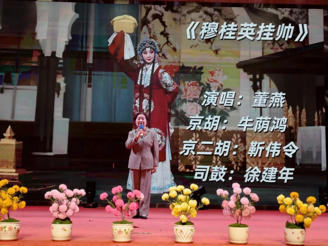 高潮迭起,由在住长辈们带来的精彩节目更让人感受到他们蓬勃的生命力。董燕长辈倾情演唱的京剧《穆桂英挂帅》,在牛荫鸿、靳伟令、徐建年三位长辈默契的伴奏下,尽显国粹艺术的独特韵味,将现场气氛推向顶峰。