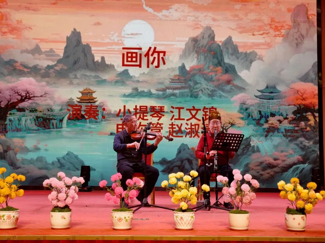 江文锦、赵淑清两位长辈携手演绎的乐器合奏《画你》,旋律悠扬婉转,仿佛带领现场长辈们步入一个如诗似梦的意境。孙贺灵长辈深情朗诵诗歌《不朽》,字字铿锵,将英雄事迹娓娓道来,感人至深,在场长辈们无不为之动容。